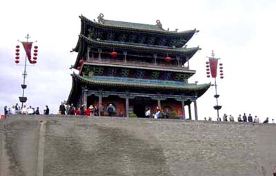 長い歴史を持つ平遥古城は、今でも極めて大きな魅力を持っている。嘗ての城壁は、平遥県を、風格のまったく異なる二つの世界に分けている。城壁の内側には600年前の町並みや店舗、市楼がそのまま残され、城壁の外側は近代的で、新しい町である。 |