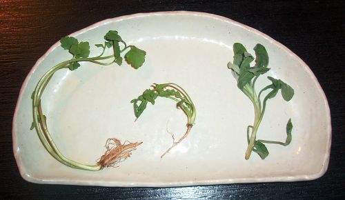 写真3:左から①セリ、②ナズナ、③ゴギョウ(ハハコグサ)