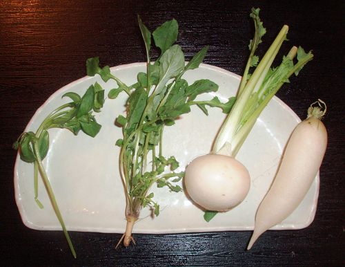 中国では昔、官吏昇進を1月7日に決めていたそうです。そのため、その朝、薬草である若菜を食べて立身出世を願ったそうです。